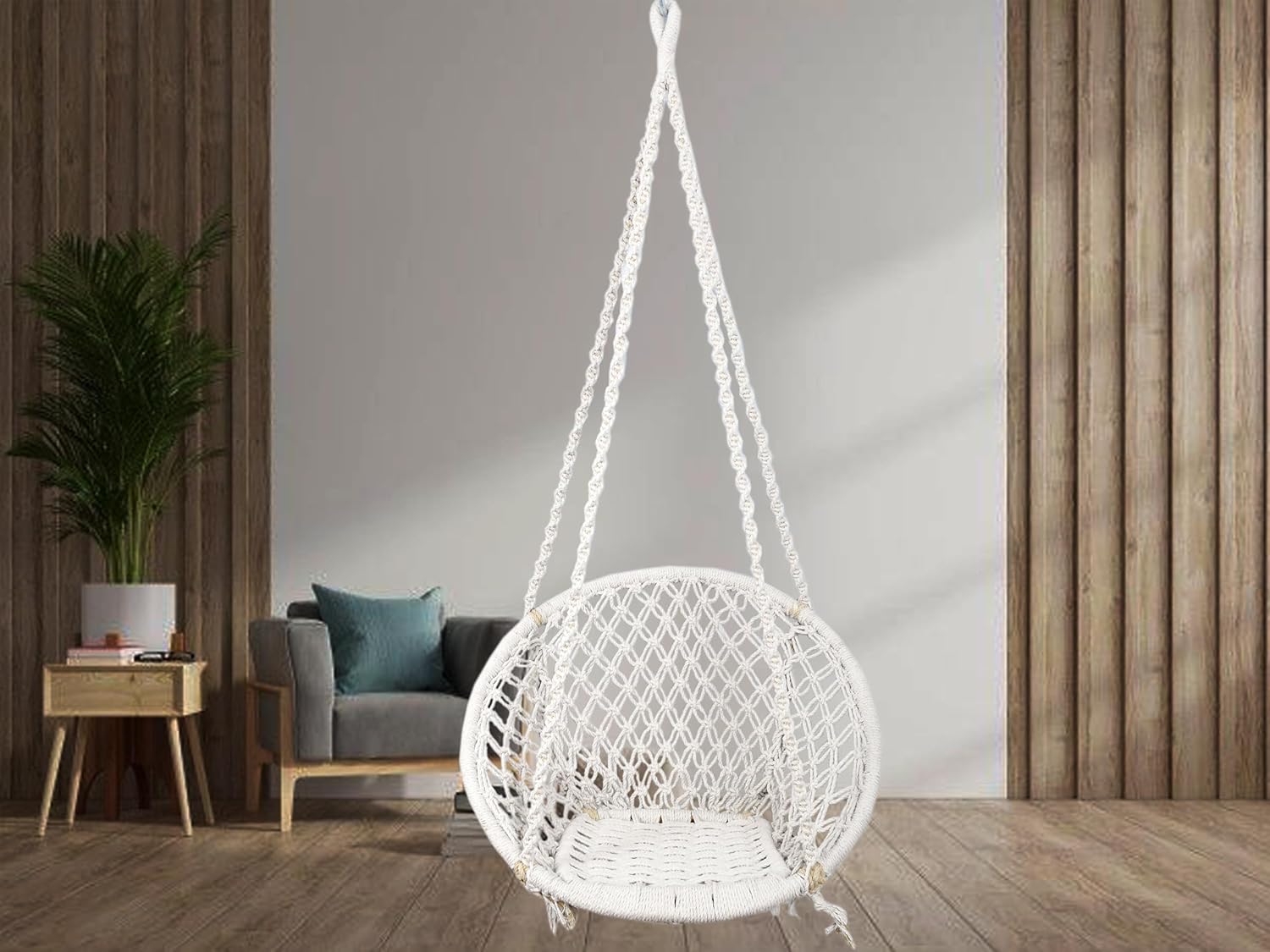 Halder Jute Regular Indoor Outdoor Square Hanging Swing Chair (Cotton, White, 150 * 65 * 72 cm)